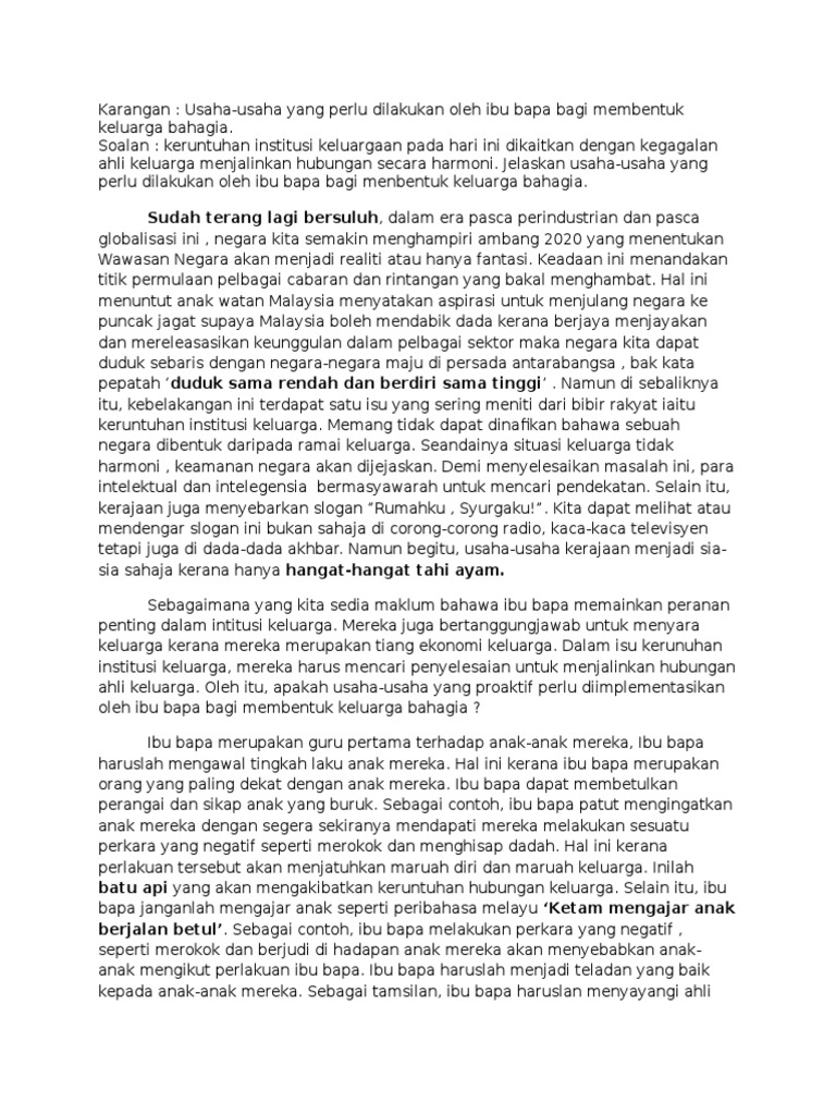 KARANGAN SPM KELUARGA BAHAGIA. Saya mempunyai sebuah keluarga yang. Ibu bapa perlu menjadi role-model kepada.